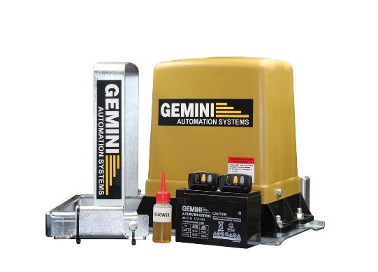“The GEMINI 12V DC sliding gate motor is a self-contained unit, which comprises of a single 12 Volt direct current electrical motor that drives the rack pinion through a reduction gearbox. The base box is secured to the base plate, which in turn is cemented or bolted to a concrete base. This motor is driven by a 7 Ah battery which gives you backup in case of a power outage. Solar charging compatible when adding a solar